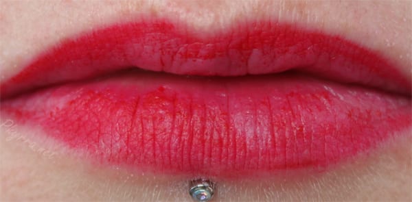 hour it started bleeding out of my lip line it looked smeared on the edges. .