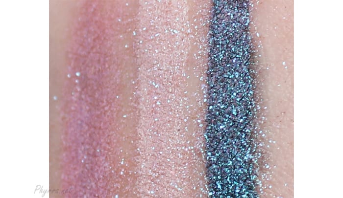 I swatched all products below left to right on Fyrinnae Pixie Epoxy, Too Faced White Lie and Urban Decay Perversion. This shows you how the colors look with a mixing medium, a white base and a black base. However, I feel like the video helps to show off these colors to their fullest extent.