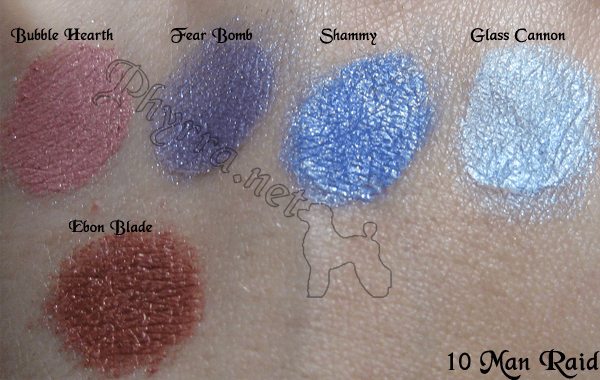 10 Man Raid is the first set I swatched. By the way, I swatched on UDPP because my Aromaleigh Light Primer has disappeared again and that’s normally my favorite to use for swatching.