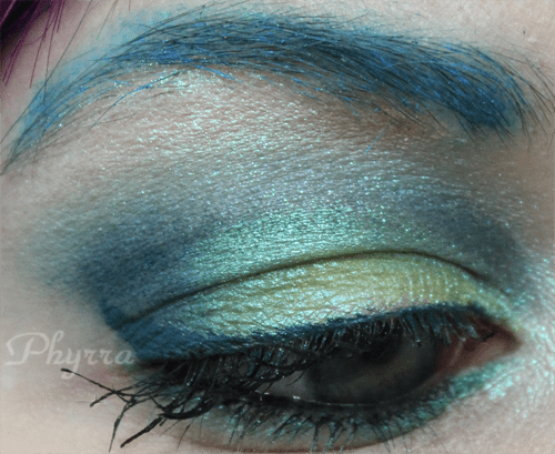 Absolutely love this look on you – the blues and greens paired with the purpley-pink lips: so very Phyrra! In terms of brands, Fyrinnae and Meow (though I know you’ve done loads with them in the past) are my faves and I’m really interested in some of the Kat von D stuff as a result of your tutorials/looks. OH, and Nyx seeing as it’s easy to get in the UK.Woo hoo, more vids!