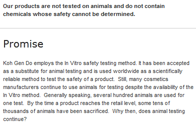 I just had to share with you the Koh Gen Do promise. I love that they explain their testing stance.