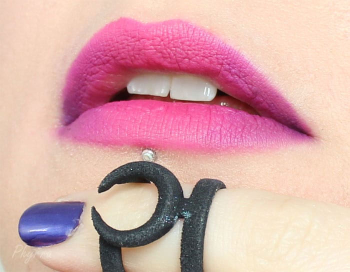 I absolutely love the look. I like how the shimmer is concentrated on the center of the lid, and the gold just on the edge of the liner line. SO pretty. Also love how you are doing your lip swatches lately with the rings.