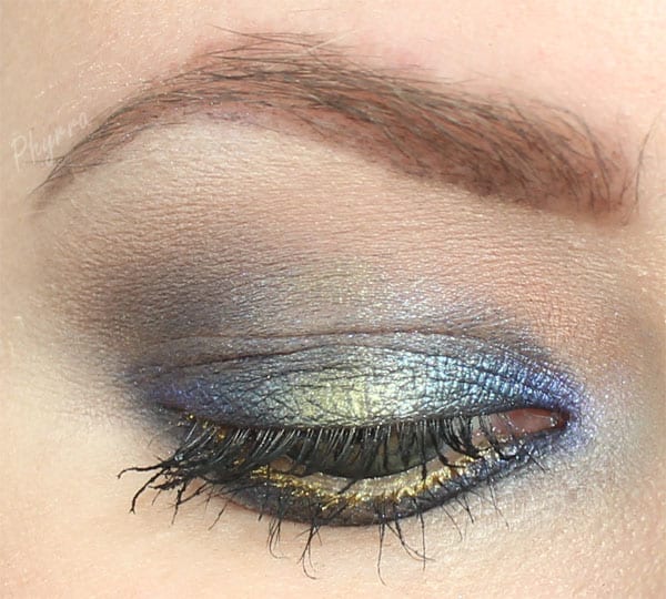This is an absolutely gorgeous look. The Jester shadow looks more gold in the photos (properly green in the video), which kind of gives a “sun coming from behind the clouds” feel to it, with the gradiated blues.
