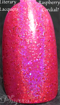 Literary Lacquers Raspberry Cordial? – a raspberry pink linear holographic polish with added holo glitter.