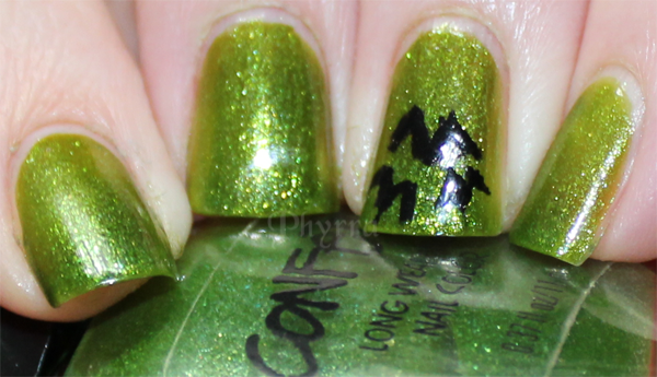 For my tutorial, we’re doing bats. You’ll need 2 colors – I chose Confetti My Favorite Martian (a green) and Cult Nails Nevermore (a black).
