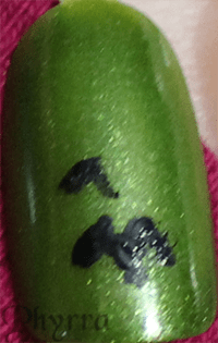 I thought the green was perfect for Halloween, but you could alternately do a dark blue or blurple base nail with a circular white moon and do a few bats on it.