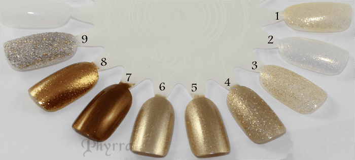 Now that is a lot of swatching! What a nice assortment of gold polishes!