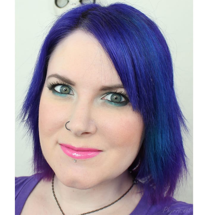 Love the teal with that bright pink lip! Such a happy look.