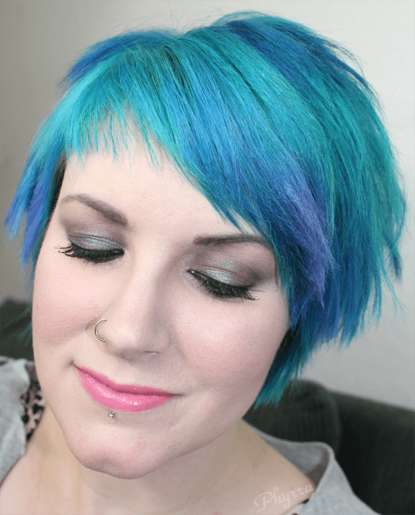 I decided I needed to try out my new products that I’d purchased from Performance Colors. Oilslick is a duochrome dark gray blue-black with earthy undertone tones and flashes of aqua sparks. It’s a shimmerstick, aka a cream eyeshadow, that dries down to a waterproof and smudgeproof finish. I also gave Performance Colors Lite n’ Smooth oil-free matte finish foundation a try. I picked up the color Snowie. I applied it using a beauty blender sponge, which I don’t typically do, but I liked the results. I’ll be reviewing the Performance Colors products for you.