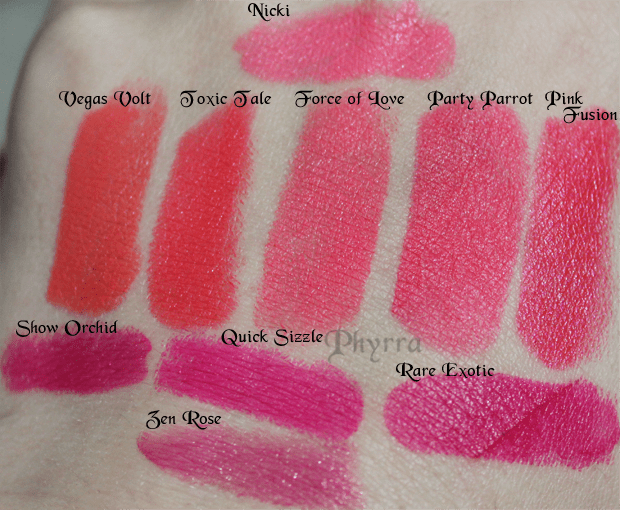 I have all of those lipsticks except for Vegas Volt and Rare Exotic. They all look gorgeous on you!