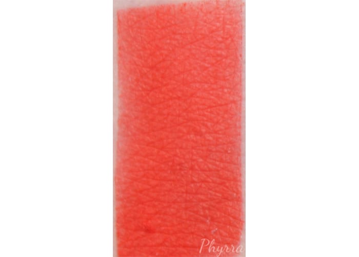 bright red-orange. This is a jaw dropping bright orange with red undertones. It left a slight orange stain.