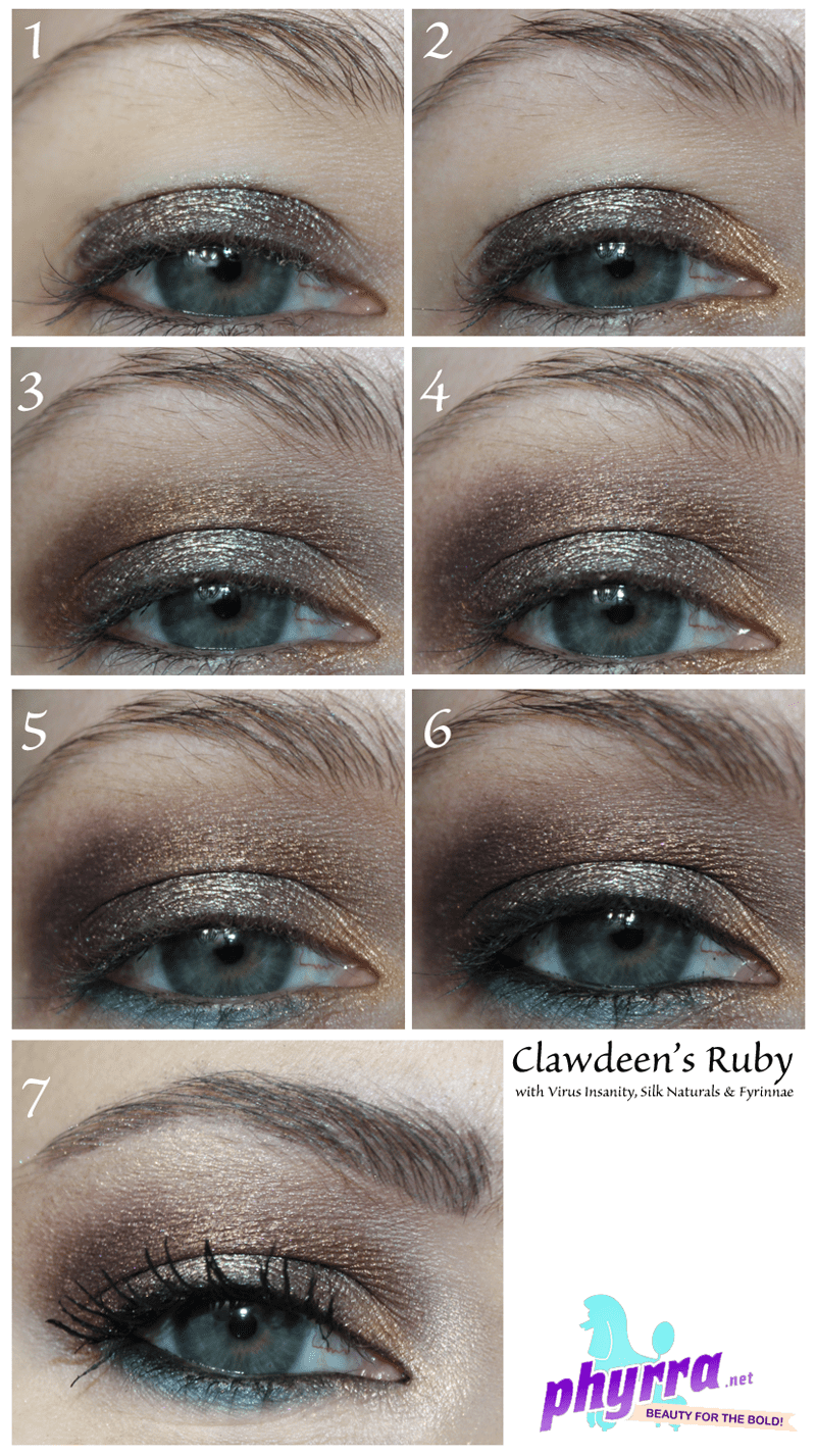 on my 3DS Aqua and collecting rupees. I used Virus Insanity Clawdeen as the central eyeshadow in this look. Clawdeen is a shimmery medium brown with iridescence that shifts from green to gold to purple. It’s versatile and lovely. I’m not even a brown eyeshadow fan and I love this color. It’s anything but boring.
