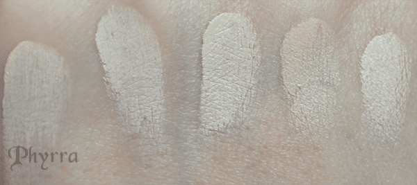 L to R – Silk Sprite – Nymph – Porcelain – Lady Fair – Ivory