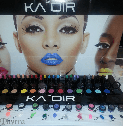 It was interesting to see matching lipstick, pressed eyeshadow and loose glitter from Ka’Oir cosmetics.